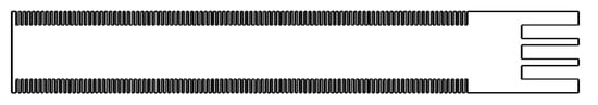 The edge serrations structure can change the flow state of the fluid to bring about some improvements. For example, the leading-edge serrations on the owl’s wings allow him to achieve remarkably low noise gliding and flapping flights [,]. It is assumed that the edge serrations also reduce the disturbance to the fluid in the micro length scale. The effect of edge serrations on MCLs were investigated by simulation. As shown in Figure 4, edge serrations of 15 μm by 2 μm are added to the both free edge connected to the anchor end of MCL.