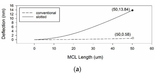 In this section, a set of simulations are used to investigate the slotted effects on deflection of MCLs.