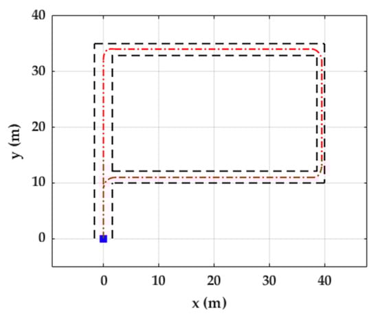 Two evaluation measures were used. (1) Return position error (RPE): the distance between the coordinates of the actual final point of the activity and the coordinates of the participant’s final stride of the corresponding activity. (2) Strides out of trajectory (SOT): All strides of the reconstructed trajectory should be within the boundaries of the corridors represented by black dotted lines (Figure 11). Otherwise, those strides will be counted as out of trajectory.