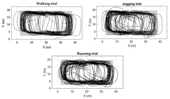 The described works have obtained very high precision in the trajectory reconstruction of walking and running. However, the systems were evaluated with very few participants, and the evaluated trajectories involved continuous walking and running activities. Currently, trajectory reconstruction methods in realistic scenarios—with several people, and considering walking, jogging, and running strides—are still missing.