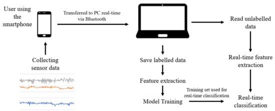 17]. Typically, such research first collects raw sensor data, extracts time domain or frequency domain features from the raw data, and then uses the extracted features to train a machine learning model to classify the specified user activities. Using these methods, researchers have developed machine learning models which can classify user activities with greater than 95% accuracy [