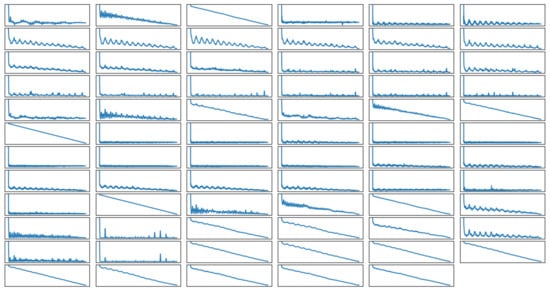 Figure 6, the autocorrelation of the features can be categorized into three types: linear, periodic and no correlation. The linear correlation means that the values of a feature are related to each other, so the closer two values are in the timeline, the greater the correlation between them. Periodic correlation occurs when the values of a feature are repeated in some frequency. Therefore, the value of an instance would be highly correlated to values from some time units before. Lastly, no correlation means that the previous value of a feature does not impact on the current value. This result shows how the sampling frequency can have a significant impact on the performance of the algorithm, as critical information could be lost if the sampling frequency is not high enough. To investigate the impact of sampling, nine participants’ data were collected with a sampling frequency of 5 Hz, and the rest were collected with 50 Hz.