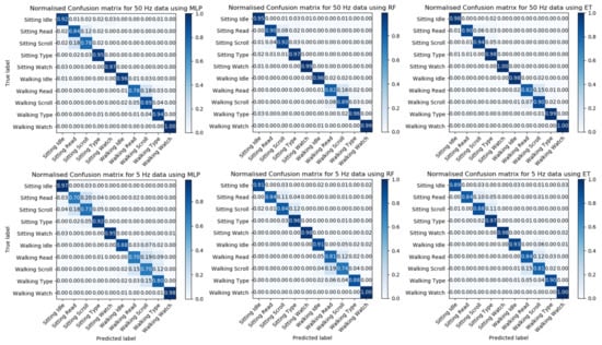 Table 5. The table shows that in general, a higher sampling frequency can provide a better result. This was further confirmed by the confusion matrix of the models after we combined the labels, as shown in