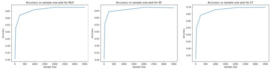 To explore whether the data we collected was sufficient to train the model, an accuracy vs sample size plot was created for each of the three models, as shown in