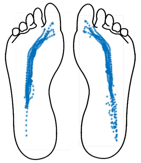 - Hessert, M.J.; Vyas, M.; Leach, J.; Hu, K.; Lipsitz, L.; Novak, V. Foot pressure distribution during walking in young and old adults. BMC Geriatr. 2005, 5, 8. [Google Scholar] [CrossRef]