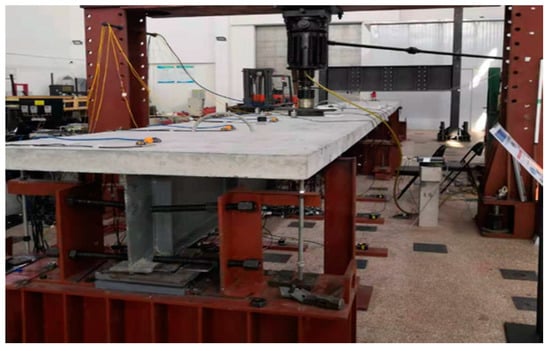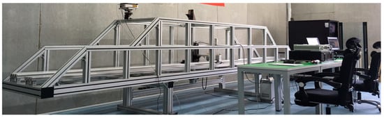 In the research process, we carried out a number of relevant tests. For example, the calibration of fixed excitation by a simply supported beam model is shown in Figure 1. The strain correlation test of a small simply supported beam at constant temperature in a high and low temperature box is shown in Figure 2. Fatigue test verification is shown in Figure 3. In order to further verify the test, a test was carried out on Jiujiang Bridge to verify Figure 4. Most of the above studies adopted common source excitation schemes, mainly to verify the calibration of the strain monitoring system under common source excitation by parallel measurement methods, which provided important verification support for the coupling relationship between temperature, prestress, and strain output in the online calibration of dynamic strain measurement in this study.
