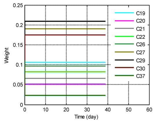 Weights are adjusted to minimize the increment of the timescale means to determine W to minimize Equation (39). With the constraint Equation (5), the objective function is: