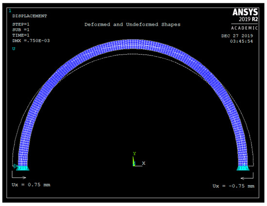 Figure 7 shows the deformed and the undeformed shape of the semicircular curved beam due to 1.5 mm radial displacement.