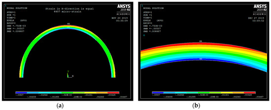 To validate Equations (5), (8), and (9), ANSYS finite element (FE) software was used to model a semicircular plastic beam, made from PVC material, with following dimensions (see Table 1).