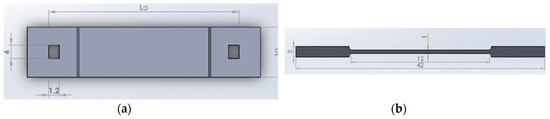 Dimensions of the dog-bone-shaped metal (Lo = 29.24 mm). (a) Top view; (b) Side view.