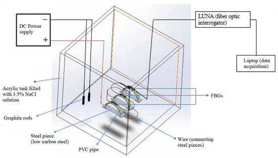 Schematic of the experimental test setup to test the proposed corrosion detection sensor.