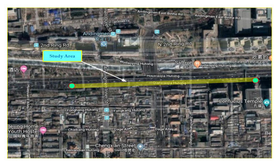 This study was conducted in the city of Beijing, China, which covers an area of 16,410 km2, and hosts 21.7 million people. Road transportation is an integral part of the city’s routine businesses, linking most households to workplaces or schools. There are 21,885 km of paved public road in Beijing (as of June 2016), 982 km of which are classified as highways [68]. According to the Beijing census, the number of private cars was close to 5.4 million, in addition to 5.3 million other vehicles in different categories including 330,100 trucks. The Second-Ring Road consists of six percent of the urban space of Beijing, with clusters of major companies, businesses, and administrative institutions, but generate 30% of the traffic volume per day [68,69]. Within this perspective, integrated urban planning is becoming difficult, so much so that 60% of the historical site of the city is lying on the Second Ring Road. Since the traffic hotspots are concentrated mainly in the center of Beijing, we have chosen an area as the study area at this location [68,70]. The Second Ring Road is approximately 33 km long including 37 on-ramps and 53 off-ramps. Figure 4 shows the study area on the Second Ring Road along with other different ring roads. In this study, a basic freeway segment of the Second Ring (L = 478.5 m) was selected.