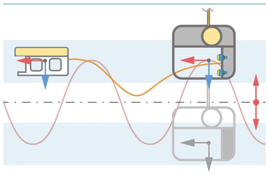 Figure 2a shows a vessel’s six degrees of freedom. Work-class ROV operations generally imply use of a deployment vessel with dynamic positioning (DP) capabilities. A DP vessel is capable of holding position and heading, thus sea current and wind-related disturbances are bounded by vessel’s surge, sway, and yaw control. However, the sea-wave height and period have a direct impact on vessel’s roll, pitch, and heave, which cannot be directly compensated for; thus, these remaining three DOF translate to TMS principally as a heave motion. Figure 2b shows the ship motion translated to the TMS.