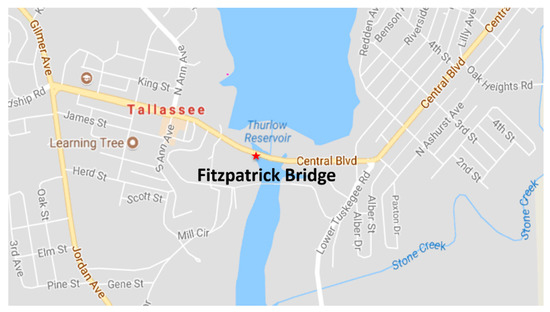 A well-designed structural health monitoring system should provide information about the condition of the structure and alert the owner of this construction about problems or poor technical conditions, which may lead to failure and, as a consequence, to a potential disaster [10]. We believe that the decision-maker who uses the system should receive information about the behaviour of structures and situations that require intervention or involve the risk of exceeding the load-carrying capacity considered as safe. In this paper, we propose the framework for construction monitoring system based on autonomous measurements performed using the Unmanned Aerial Vehicle (UAV) and a Digital Image Processing (DIP). In our analysis, we used the photographic documentation of the Fitzpatrick Bridge located in the city of Tallassee, Alabama, in the United States. The considered case of study is a riveted steel truss bridge supported on concrete pylons. Figure 1 presents the location of the Fitzpatrick Bridge, and Figure 2 shows the side view of the span.