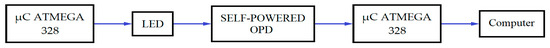 Block diagram of the experimental setup, using a low-cost microcontroller, a high luminosity LED, and the self-powered OPD.
