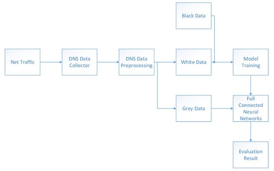 Figure 2 shows the architecture of the system, which consists of four main units: DNS data collector, DNS data pre-processing, DNS behavior feature extraction, and DNS behavior analysis and evaluation (deep learning algorithm).