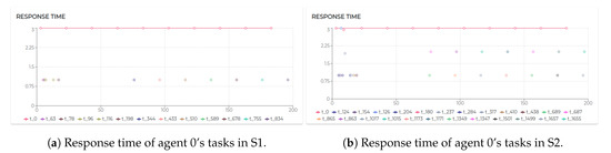 Although less, the flexibility of the general-purpose algorithms cost to the agent 3 to record 8% of deadline miss. The comparison of the response time among scenario S3rt and S3gp is shown in Figure 20.