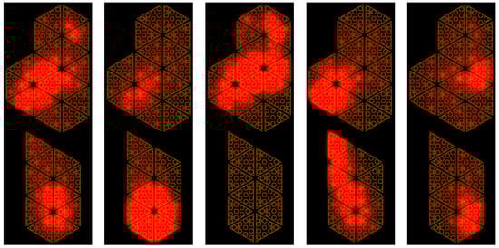 We developed a MATLAB-based tool for online visualisation of the estimated CoP, capacitances and pressure distribution, and estimated forces and moments as shown in Figure 12. Unfiltered data were streamed through the YARP protocol with a frequency of and read in MATLAB by opening a YARP port []. Data were received and processed in real-time. The cycle for reading, processing and visualising the results had a frequency of . This means that we processed one sample for every two sent, where the sample indicates the set of taxel measurements in a given instant.