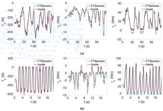 Figure 11 shows the components x and y of the CoP related to Tasks T3 and T4. It can be observed that the values related to the insole were close to those related to the FT sensors (i.e., the ground truth).