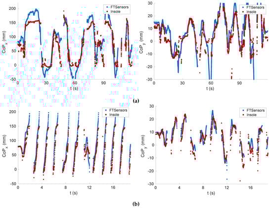 Furthermore, the calibration goodness could be analysed by comparing the CoP estimated by the FT sensors and the insole. The CoP estimated by the insole was computed as: