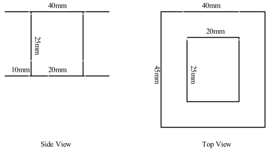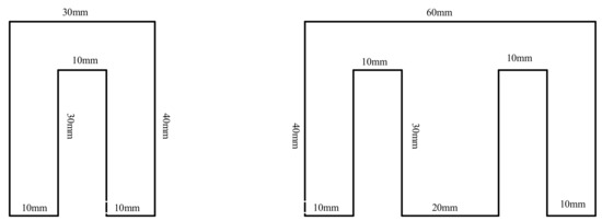 The dimensions of the sensors are presented in Figure 2. The dimensions of the laminations are displayed in Figure 3. All the geometrical data of the sensors are presented in Table 1. The measurement system was just an oscilloscope which recorded the induced voltage in the sensors. Afterwards, the records were analyzed with MATLAB software in a computer.