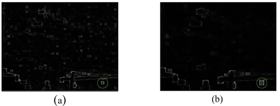 The preprocessed result is shown in Figure 4b, indicating that the background is well suppressed. However, for infrared image against complex terrain-sky or sky backgrounds, the edge of the object has similar thermal intensity measure as a small target which greatly affects the performance of the WBCT method. Therefore, a kurtosis map is calculated by local kurtosis operator to offset this effect, improving the adaptability of the WBCT method. The method to calculate the kurtosis map as shown in Algorithm 1, where is the size of the neighboring area centered at the pixel point (i,j), and m and n are odd integet numbers, respectively. The kurtosis map is shown in Figure 5.