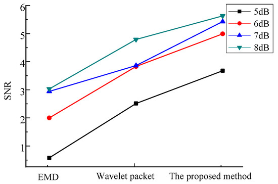 The Signal to Noise Ratios (SNRs) of the three methods applied to the simulation signal, with different levels of SNRs, are shown in Figure 9.