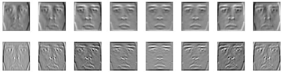 To manage difficulties in subspace analysis and statistical learning methods, non-statistical learning methods, e.g., Gabor wavelet and LBP, have been employed for facial image descriptions. The Gabor-wavelet-based facial features are robust to noise and local image transformations caused by changes in lighting, occlusions, and head poses [15,16]. An LBP histogram is computationally efficient, nonparametric, and invariant to monotonic changes in illumination [17]. Combinational models consisting of a Gabor wavelet and an LBP histogram [18,19], namely Gabor-LBP histograms, have received a considerable amount of attention. With the great success of Gabor wavelets and LBP histograms in HFR, there are many variations of Gabor-wavelet- and LBP-based face representation [16,20,21]. Despite these facial representations showing significantly good performance, the dimensionality of the feature vector is too high.