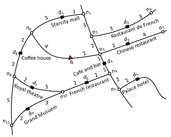 - Deng, K.; Zhou, X.; Tao, H. Multi-source skyline query processing in road networks. In Proceedings of the 2007 IEEE 23rd International Conference on Data Engineering, Istanbul, Turkey, 15–20 April 2007; pp. 796–805. [Google Scholar]