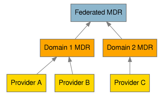 Another aspect in which DS4IoT can benefit IoTCrawler is in the management of data-security as part of both the data-security enforcement and the access to data from different components inside IoTCrawler. Figure 9 shows how different Meta-Data Repositories (MDRs), which hold information regarding the different IoTStreams registered in the system, are structured in a hierarchical manner. This structure allows the integration of existing platforms into the IoTCrawler framework, providing at the same time, the foundation for scalability of the system. Security being a pervasive element, there is a need to communicate and represent data-security aspects across domains.