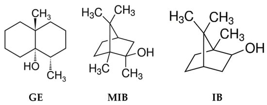 - Srinivasan, R.; Sorial, G.A. Treatment of taste and odor causing compounds 2-methyl isoborneol and geosmin in drinking water: A critical review. J. Environ. Sci. 2011, 23, 1–13. [Google Scholar] [CrossRef]