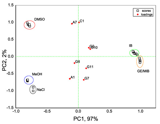 - Hensarling, T.P.; Waage, S.K. A bromine-based color reaction for the detection of geosmin. J. Agric. Food Chem. 1990, 38, 1236–1237. [Google Scholar] [CrossRef]