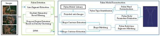 The remainder of the paper is organized as follows: the brief descriptions of pylon library are introduced in Section 3; the details of efficient pylon detection method are described in Section 4; pylon type identification, pylon body reconstruction, and pylon head reconstruction are mentioned in Section 5; the details of experimental datasets and results are presented in Section 6; Section 7 discusses the influence factors of pylon reconstruction; and Section 8 provides the conclusions of the proposed method.