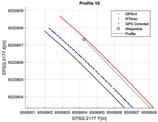 Example of corrected position for GPS at profile no. 10 (black dots).