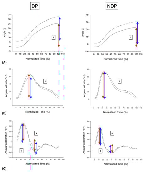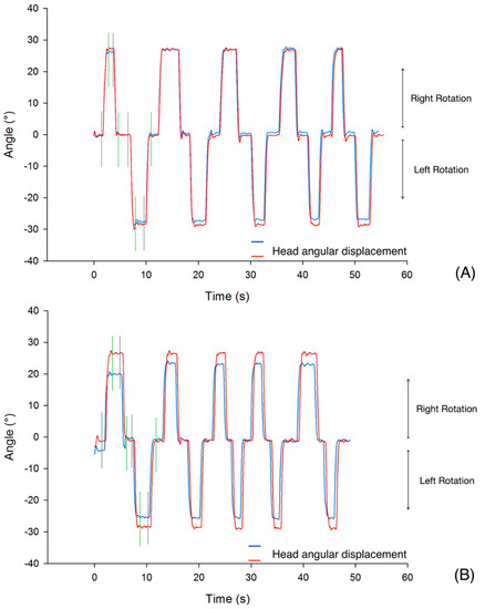 - Hage, R.; Dierick, F.; Roussel, N.; Pitance, L.; Detrembleur, C. Age-related kinematic performance should be considered during fast head-neck rotation target task in individuals aged from 8 to 85 years old. PeerJ 2019, 7, e7095. [Google Scholar] [CrossRef]