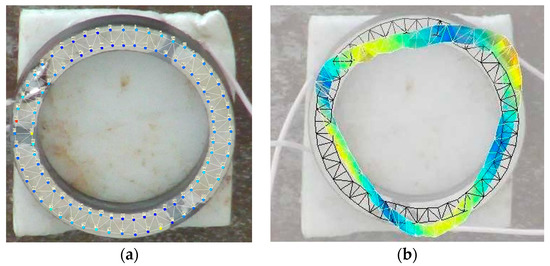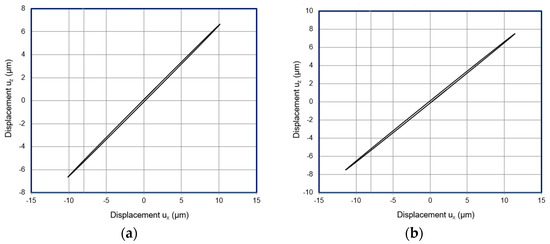 where φ1, φ2 are the vectors of nodal potentials of nodes coupled with electrodes and the vector of nodal potentials calculated during numerical simulation, respectively. Natural frequencies ω and modal shapes of the actuator are derived from the modal solution of the piezoelectric system: