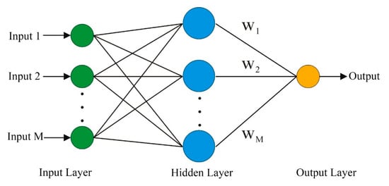 BPNN is a multilayer feedforward neural network. It has the characteristics of error reverse transmission and signal forward transmission. BPNN is learned by example, which consists of some input examples and the known correct output for each case. In the first step of the BPNN process [], the learning samples are added to the input network. Then, the back-propagation algorithm is used to train the weights and deviations in the network. It more closely matches the output vectors and expectation vectors. If there is a big error between the output result and the expected result, the error propagates backward, adjusts the network threshold and weight, and is repeated to eventually make the predicted output result approach the expected output result. The topological structure of BPNN is shown in Figure 2. Previous research has shown that the basic architecture of a three-layered neural network consists of an input layer, a hidden layer, and an output layer. It can accurately fit nonlinear mapping relationships []. Additionally, the trial-and-error approach is used to choose an appropriate number of hidden neurons in the BPNN model.