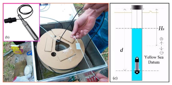 The principle and installation of groundwater level monitoring device (a) Sensor installation (b) a sensor for monitoring and (c) the principle of monitoring.