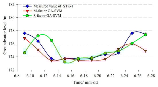 The predicted result of groundwater level in STK-1 by the GA-SVM model.