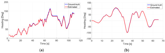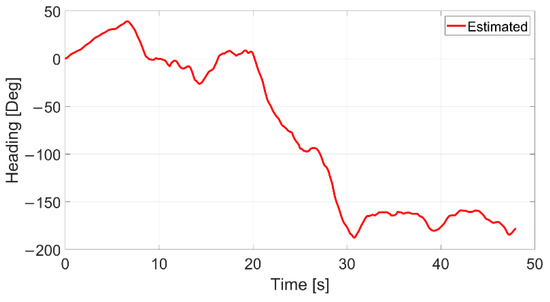 For the sake of completeness, the heading estimates for this test are reported in Figure 15 as well. Also, in this case the angular signal looks very smooth without the presence of spurious spikes, that generally appear when erroneous pose estimations are computed.