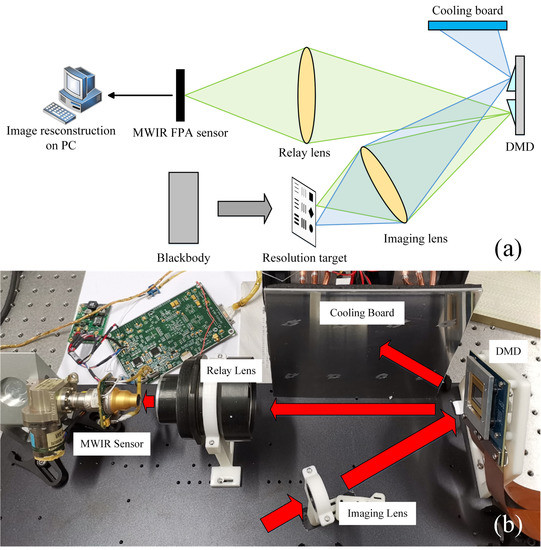 - Wu, Z.; Wang, X. Focal plane array-based compressive imaging in medium wave infrared: Modeling, implementation, and challenges. Appl. Opt. 2019, 31, 8433–8441. [Google Scholar] [CrossRef] [PubMed]
