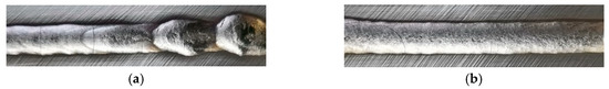 The deposition effect of the open-loop and closed-loop control is shown in Figure 14. It can be seen that, when the droplet transfer distance changes from 0 to 5 mm without control, the droplet transfer state changes from liquid bridge to large droplet transfer, and the deposition quality is poor. When the droplet transfer state is maintained as a liquid bridge transfer within closed-loop control of the droplet transfer distance, the deposition quality is consistent, which is better than that without control.