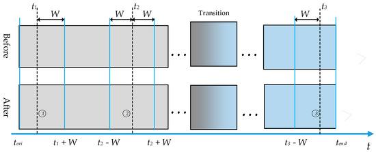 Step 7: The time index before t* is determined as phase . If the duration of this phase is less than the threshold δ, the phase is determined to be the transition state; then, proceed to step 9. Otherwise, go to the next step.