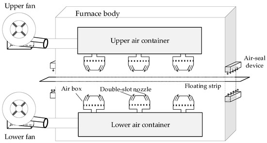 Aluminum alloy for auto body sheets (ABSs) are the top-class aluminum alloy products owing to their better surface quality and mechanical performance. If these strips are produced using a traditional vertical furnace, some scratches and soft spots caused by fixtures may occur, resulting in poor quality [3]. An air cushion furnace is a new type of heat-treating equipment, which suspends the strip in the air for processing to prevent the strip from contacting any object such that the strip has a good surface quality. Moreover, compared with the traditional box-type heat treatment furnace, the air cushion furnace has a higher production efficiency [4]. Therefore, the air cushion furnace has been indispensable equipment in the production process of aluminum alloy sheets.