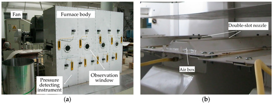 The proposed approach was tested in the self-developed air cushion furnace experimental platform. The specification of the experimental platform is as stated in Hou et al. [23]. In the production process, the floating height could not be continuously measured by sensors due to the technical limitation. On the experimental platform, we made an observation window to temporarily detect data through the sensors [9]. The schematic diagram of the air cushion furnace experimental platform is shown in Figure 6. Figure 7 shows the equipment of an air cushion furnace.
