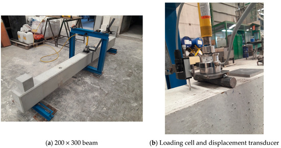 Loading cell and displacement transducer on the 200 × 300 mm beam.