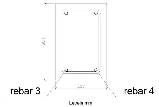 Position of the rebars studied in the 200 × 300 mm beam.
