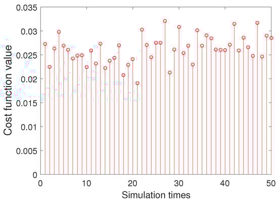 Because the search path of meta-heuristic intelligent optimization algorithm is random every iteration [36], in order to verify the stability and robustness of the proposed scheme, 50 simulation experiments are performed.