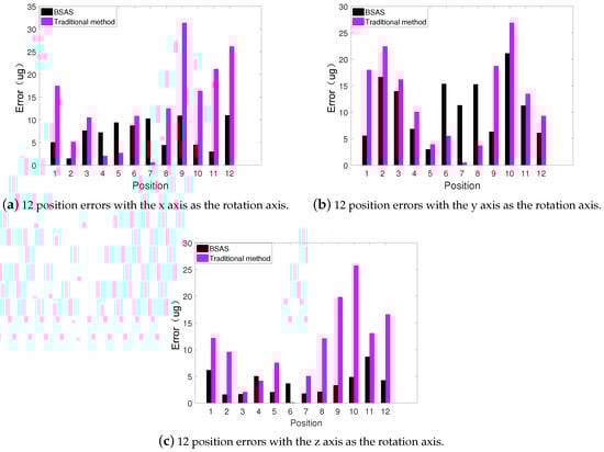Seen from the Figure 9, the 36 position measurement error range of the traditional calibration scheme is in 1 ug ∼ 35 ug, while the measurement error based on the proposed scheme is varied from 1 ug to 25 ug. In addition, Table 5 records the mean and standard deviation of measurement error. The average measurement error of the traditional calibration scheme is 12.025 ug, while that of the proposed scheme is only 7.253 ug. In terms of standard deviation, the traditional scheme is 8.296 ug, and the proposed scheme is only 4.786 ug.