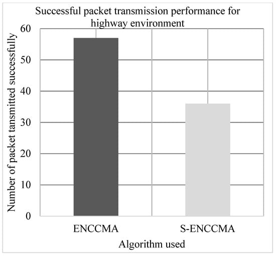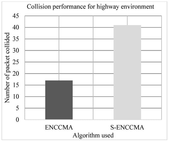 In Table 4, a comparison of S-ENCCMA with a state-of-art technique is showed. It shows that S-ENCCMA support distributes channel-sharing mechanisms for the V2V environment. Thus, S-ENCCMA aids in maximizing the system throughput with minimum collision overhead and hence enhancing system efficacy. The adopts the enhanced non-cooperative cognitive division multiple access () [] real-time (Medium Access Control) communication protocol. To provision real-time access, the combines Time Division Multiple Access (), Frequency Division Multiple Access (), and Cognitive Radio () techniques. The Medium Access Control (MAC) protocol avoids signaling, this aids in enhancing the system’s efficiency. However, did not consider provisioning security for message authentication and user privacy. In [], they evaluated the packet delivery performance considering different environments. However, they did not consider varying the number of devices and vehicle mobility in their experiments. In [,], the authors conducted the experimental analysis considering varied mobility speeds to evaluate the collision performance. However, the performance evaluation under different environmental conditions was not considered. Our model considers performance evaluation considering throughput, collision and successful transmission considering a varied number of vehicles, varied speed, and varied environmental conditions. The overall survey shows the efficiency of our model over state-of-the-art techniques.